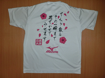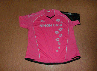 ユニフォーム 日本大学卓球部の試合で着用するユニフォームです。 “黒さくら”ニッタク (男女兼用) “黒デジ”ニッタク(男子専用) “黒ミズノ” (男女兼用) “ピンクミズノ”(男女兼用) “ヤサカ”(女子専用) Tシャツ日大が試合の練習や移動などで着用するTシャツです。 ”黒ミズノ” 前 後ろ “白ミズノ” 前 後ろ “VICTAS”(女子専用) 前 後ろ ⇒to 卓球場 ⇒ to 寮関係